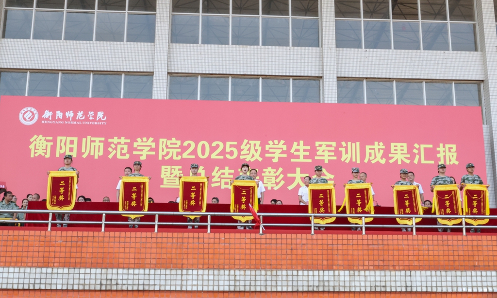 陈敏宣读《关于表彰衡阳师范学院2025年军训工作先进集体和先进集体和先进个人的决定》,与会领导为获奖的集体与个人颁奖。