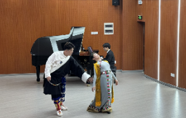 “原来每个舞蹈动作都藏着故事,不是简单模仿,而是和传统文化对话。”这是音乐学院学生在舞蹈课堂上发出的感慨。为了让学生真正掌握 “会跳” 的专业功底与 “会教” 的教学能力,学院教师团队将民族舞蹈文化融入教学全过程。教师们带领学生深挖瑶山、藏寨等地区的原生态舞蹈资源,把采集到的鲜活舞蹈语汇、民族故事转化为教学素材,从动作拆解到文化解读,层层递进引导学生理解舞蹈的内涵。