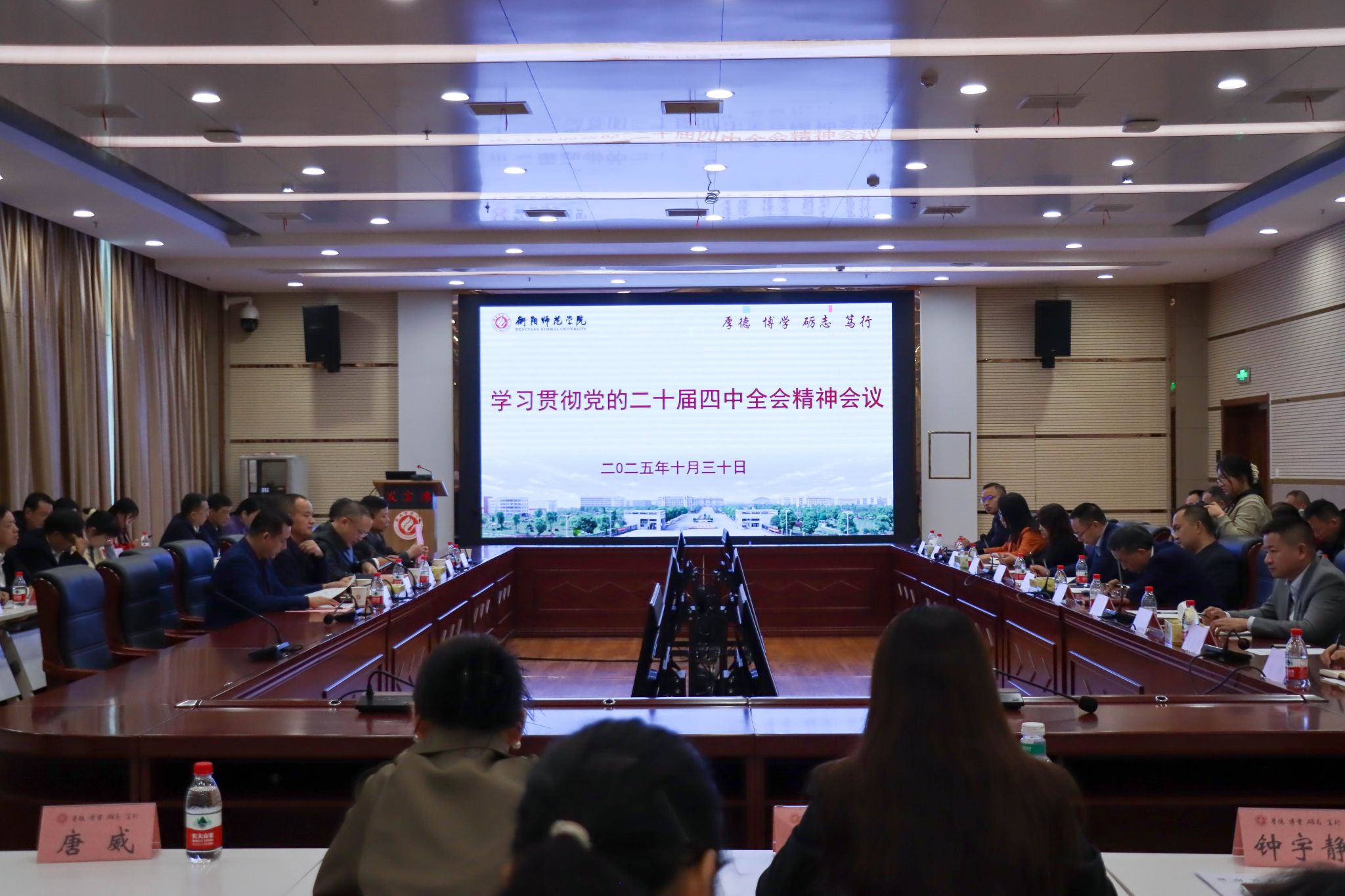 10月30日下午,学校举行学习贯彻党的二十届四中全会精神会议。党委书记刘子兰主持会议并讲话,强调要深刻领悟“两个确立”的决定性意义,增强“四个意识”、坚定“四个自信”、做到“两个维护”,以昂扬的精神状态、务实的工作作风贯彻落实党的二十届四中全会精神,以更高站位、更大力度、更实举措谋划好、推进好“十五五”时期学校教育改革发展,奋力谱写以教育强国建设支撑引领中国式现代化的衡师篇章。
