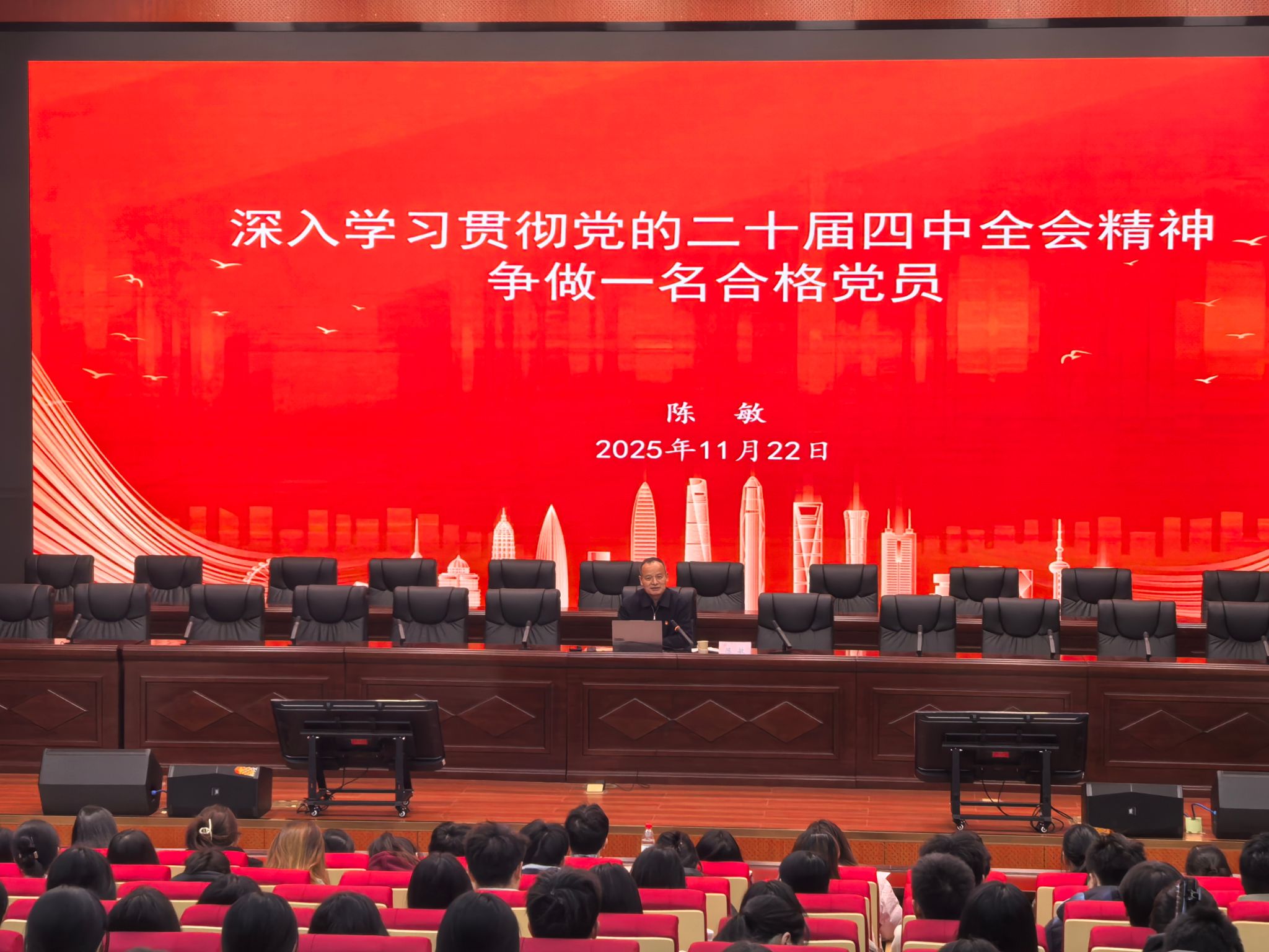 培训聚焦理论武装与党性锤炼,设置多场专题辅导。校党委副书记陈敏以《深入学习贯彻党的二十届四中全会精神 争做一名合格党员》为题授课。陈敏介绍了党的二十届四中全会的基本情况,引导学员正确认识“十四五”时期我国发展取得的重大成就,以及教育在中国式现代化进程中的新使命、新要求和新挑战,并勉励青年党员在中国式现代化进程中坚定理想信念、磨砺品德修为、锤炼过硬本领、永葆实干热情、弘扬奉献精神,在强国建设征程中挺膺担当。
