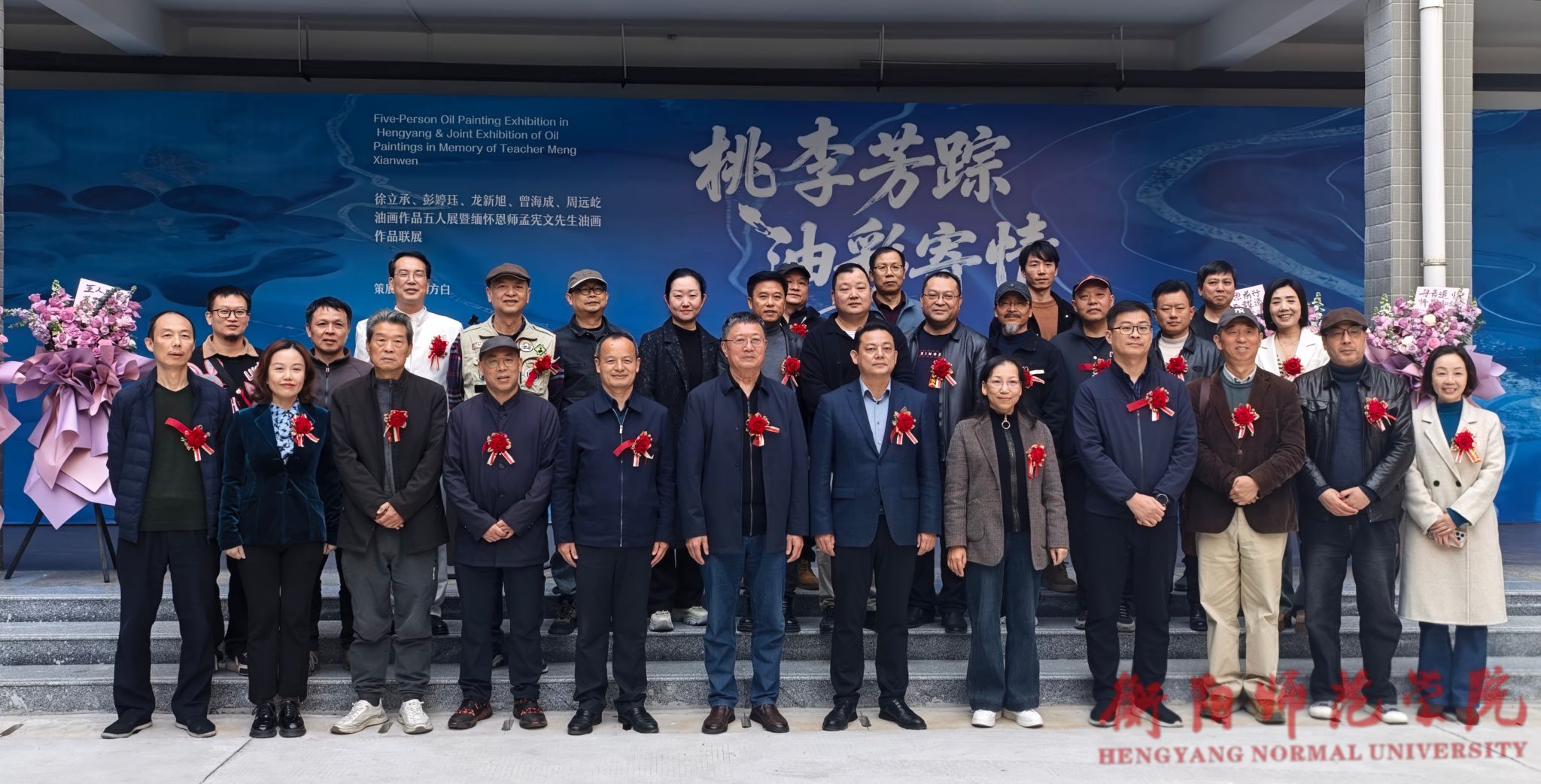 12月2日下午,“桃李芳踪・油彩寄情——缅怀孟宪文先生师生油画联展”在我校东校区逸夫楼美术展览馆开幕。党委副书记、校长魏晓林出席开幕式并致辞。衡阳市人大常委会原党组书记、常务副主任、省文史馆研究员、市关工委主任谢宏治,党委副书记陈敏,党委委员、校领导赵先超,党委委员、组织部部长唐艳出席。副校长李玲玲宣布联展正式开幕。美术学院院长叶经文主持。