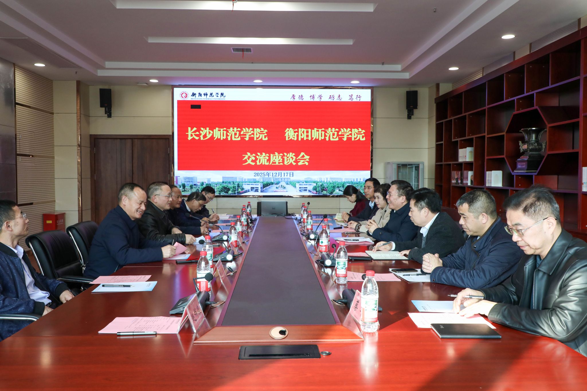 胡穗对我校的办学成果与特色予以高度评价。他表示,此次来访旨在学习借鉴我校在硕士点建设、学科专业优化、干部队伍建设等方面的实践经验。他指出,两校血脉相连,合作基础扎实,长沙师范学院愿与衡阳师范学院进一步加强校际交流,在红色教育融合、师范专业提质、学生实践能力培养等方面互学互鉴,共同推动两校事业向前发展。