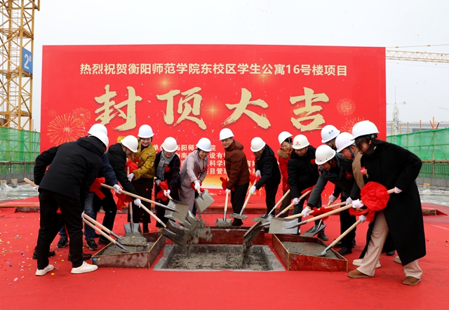 魏晓林代表学校向关心支持我校建设发展的各级单位、各界朋友及奋战在工地的建设者表示感谢。他指出,学生公寓建设是关系学生切身利益的民生工程,也是学校优化育人环境、提升办学品质的基础工程。魏晓林强调,主体结构封顶只是16号楼项目的阶段性成果,希望各参建单位以此作为新的起点,严把质量关,将项目打造成优质工程、精品工程;加强安全管理,加快施工进度,在保障安全和质量的前提下,确保项目按期投入使用,让学生早日住进安心房、舒心房。