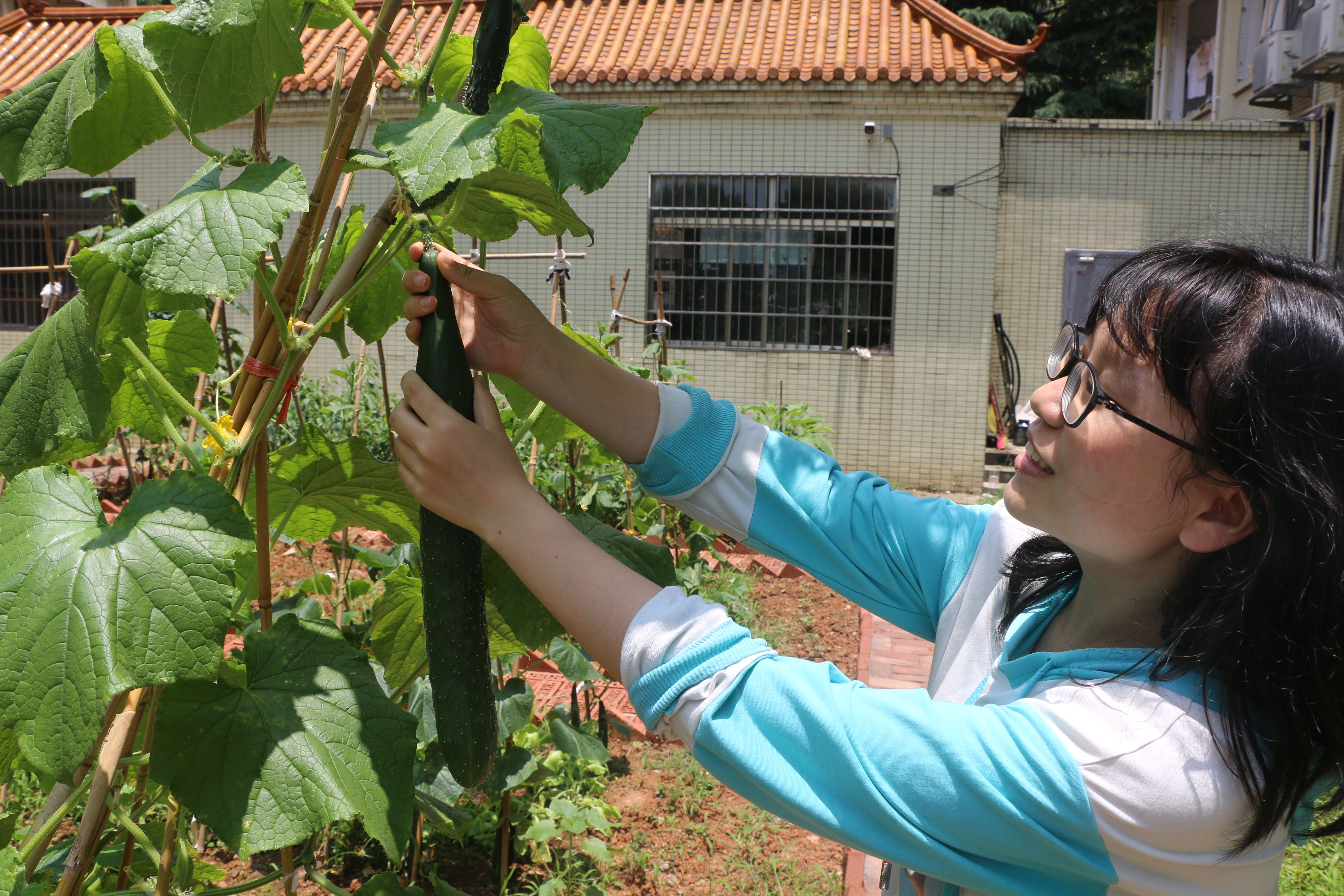 两个月前,学生社区将宿舍中庭闲置空地开辟为“责任田”,划分给各学生小组。从松土、播种、育苗到日常浇水、除草、除虫,学生们在专业导师指导下,亲历了“粒粒皆辛苦”的全过程。地理与旅游学院的沈蕴之同学感慨道:“以前只在课本里读到‘汗滴禾下土’,现在每次弯腰除草,汗水真实滴在泥土里,才真正理解劳动的价值与食物的珍贵。”从生菜、小番茄到青椒、黄瓜,每一株幼苗的成长都凝聚着同学们持续的照料与期待,在日复一日的守护中,责任意识与耐心悄然生长。