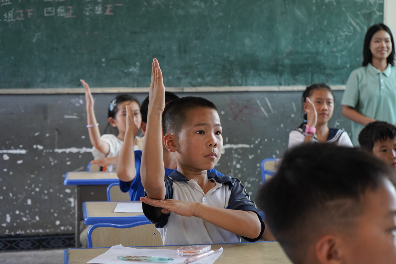 在教学互动环节,志愿者们设计了 “巾帼英雄知多少” 知识问答、“我是小英雄” 情景模拟、“未来的我” 梦想分享等多样化活动形式,极大地激发了孩子们的参与热情。现场气氛热烈活跃,孩子们争相举手发言,清澈的眼神中充满了对未来的无限憧憬,现场气氛热闹温馨。