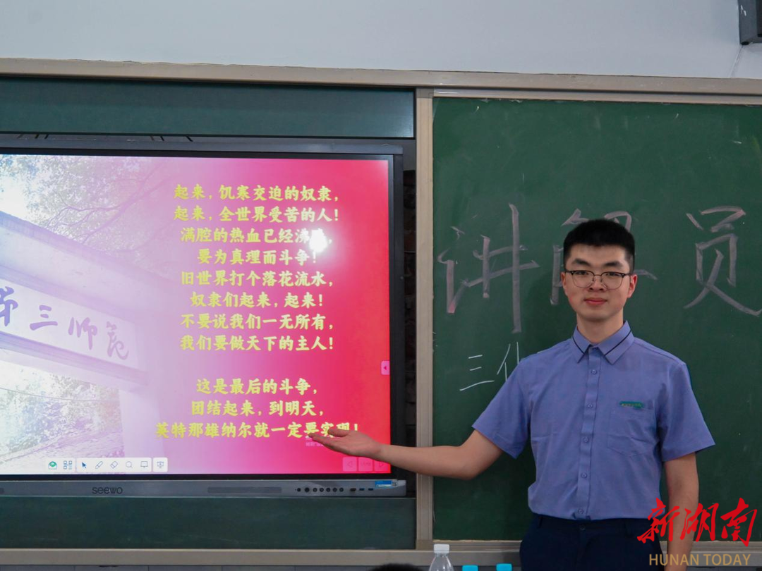 湖南日报·新湖南客户端7月19日讯(通讯员 康俊宇 张馨 姜艳群 贺旖旎)7月18日,衡阳师范学院“薪火”学生讲解团成员在暑期“三下乡”期间,走进衡南县三塘联合学校松山中学开展了一场别开生面的大思政课。衡师青年发挥讲解团专业优势,通过精心设计的党史主题讲解、“小小讲解员”沉浸式培训与实践体验,让红色基因在孩子们心中扎根,点燃少年志向。